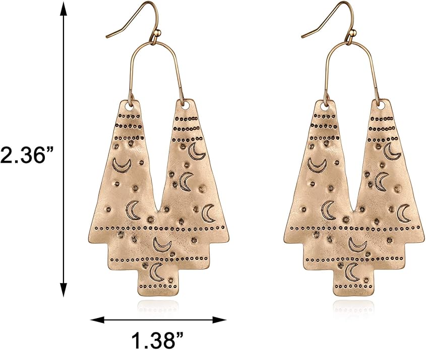 - 【Dainty Gold Earrings for Women】: Boho elegant antique gold fish hook dangling earrings. The width and length are show in the picture , lightweight and make your earlobe comfortable, there is no burden from long time wearing.