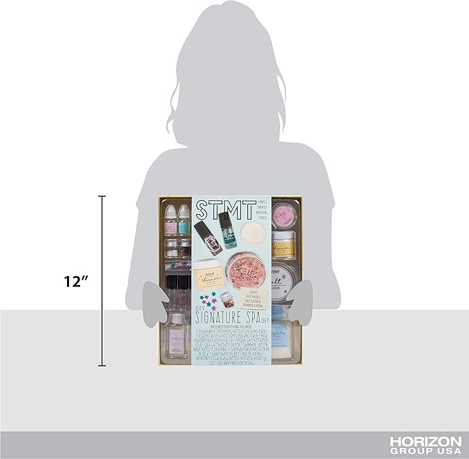 STMT DIY Signature Spa Set by Horizon Group USA, Mix & Make Your Own Spa Supplies with Salt Scrubs, Fragrances & Shimmer Lotions. Multicolored