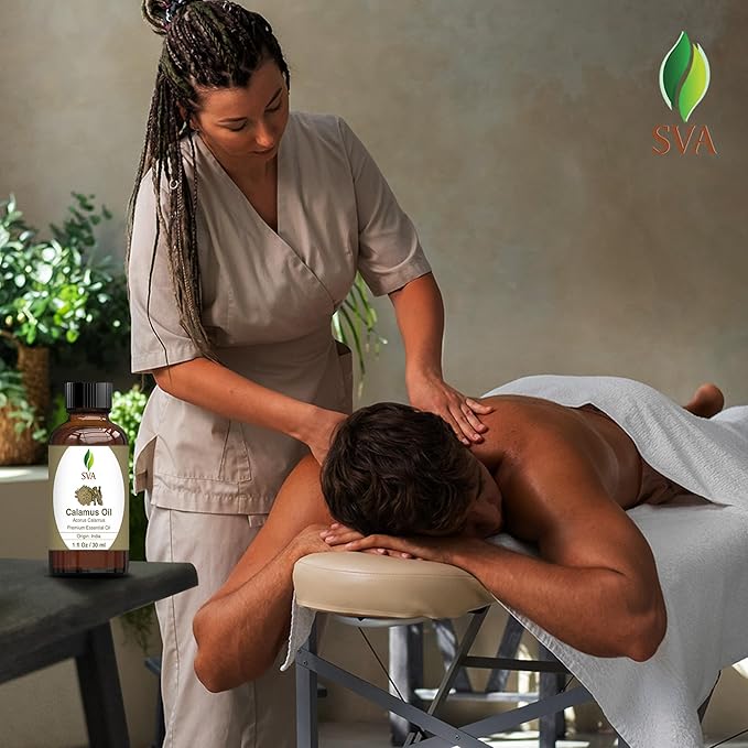 - Premium Quality Calamus Essential Oil: SVA Calamus essential oil 1 Fl Oz is obtained by steam distillation of Calamus plant stems. Our Calamus essential oil is free of preservatives and comes with a dropper for easy application. It is not tested on Animals. We care for you