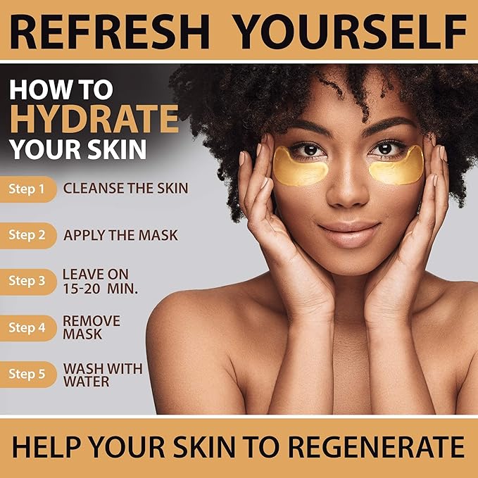 Under Eye Mask Patches Collagen, Gold Eye Patches for Puffy Eyes, 24K Gold Eye Mask, Under Eye Gel Pads, Eye Masks for Dark Circles, Puffiness Treatment Eye Masks Skincare