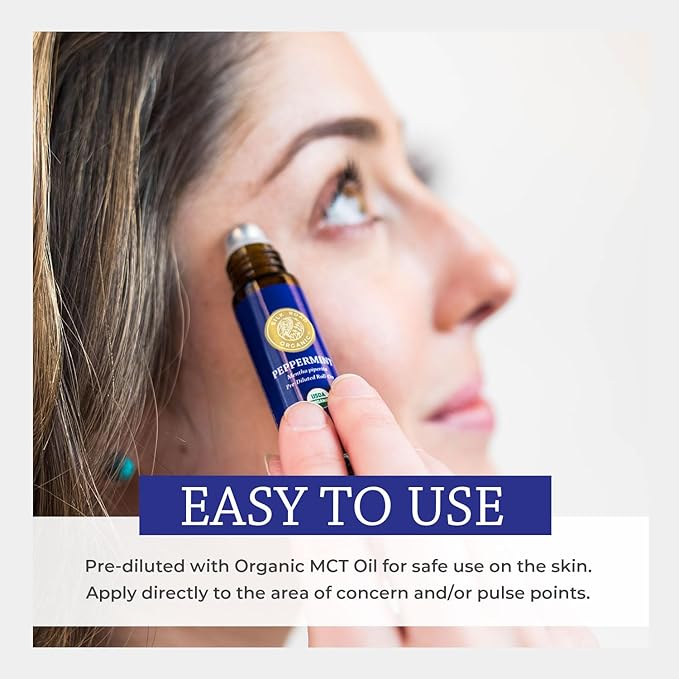 - 100% PURE, NATURAL & NON-GMO: Our aromatherapy roll-on is made from USDA Certified Organic Peppermint essential oil. When applied to the skin, the menthol properties provide a relaxing, cooling sensation.