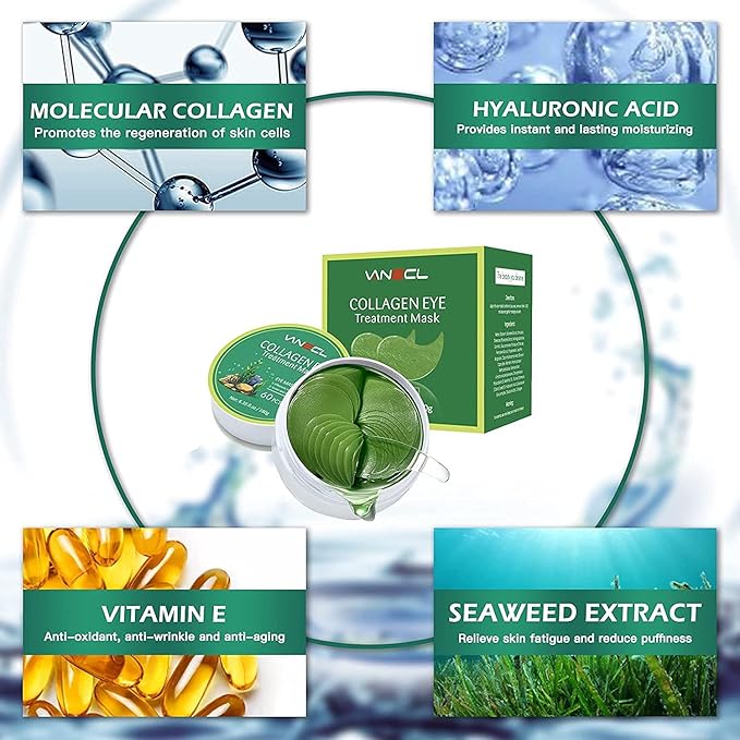 VANELC Eye Mask,Under Eye Patches with Collagen Seaweed,Eye Gel Treatment Masks For Dark Circles , Under Eye Bags Treatment, Natural Eye Masks for Puffy Eyes, Under eye Dark Circles,Anti-Wrinkle