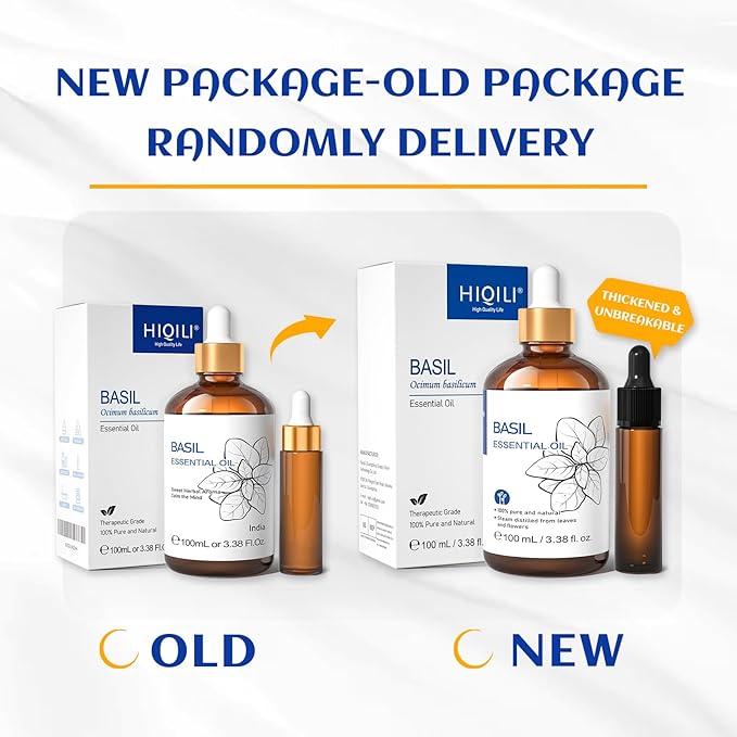 HIQILI Basil Essential Oil, 100% Pure & Natural, Diffuser in Bedroom, Yoga, Mediation for Calming Relaxation Mood, Hair Growth, Body Massage, DIY Sweet Herbal Scented Soap Gifts- 100ML