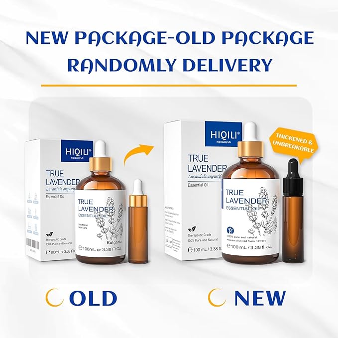 HIQILI Lavender Essential Oil - 100% Pure Undiluted, for Aromatherapy Diffuser at Room & Office, Relax Mind and Better Sleep, Therapeutic Grade | 100ML with Glass Dropper