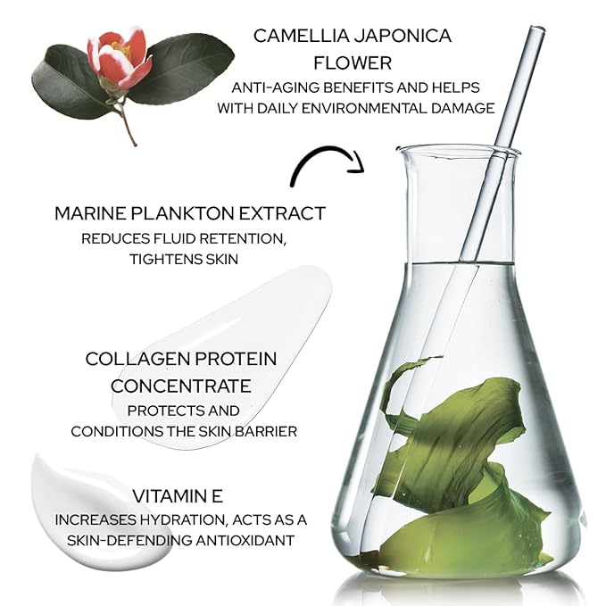 - Marine Plankton & Camellia Japonica: Targets fluid retention and environmental stress, promoting a firmer, youthful eye contour.