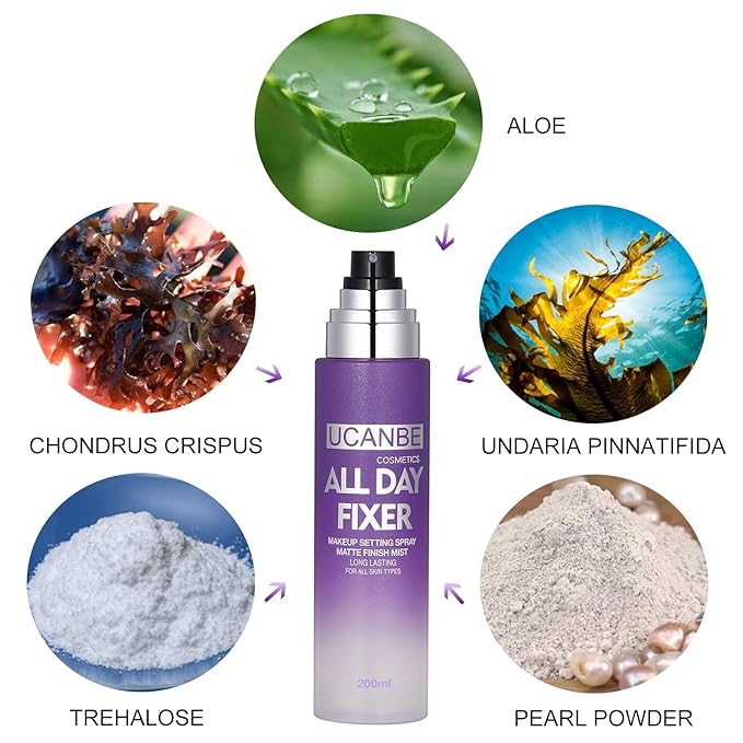 - SETTING SPRAY for Oily Skin: UCANBE ALL DAY FIXER is a finishing spray for keeping your makeup stays put with matte finish. It contains pearl powder which would help control oil and brightening your face. Airbrush design is easily to prevent from cracking or smudging your make up.