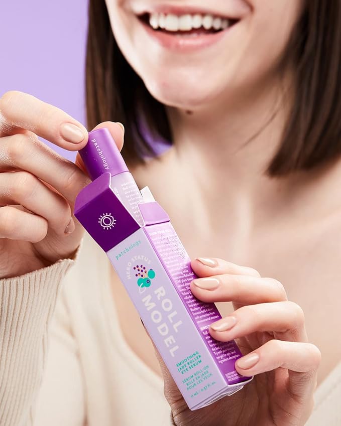 Patchology Jade Facial Roller with Peptides and Bakuchiol Serum for under eyes - Patchology Smoothing Roll Model - firms and smooths skin while reducing visible fine lines. 1 count.