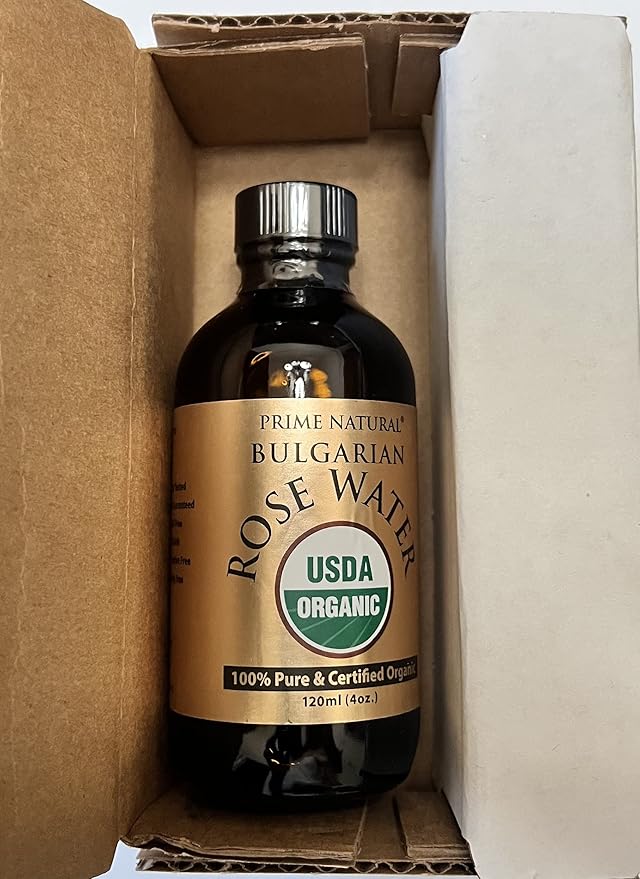 PRIME NATURAL Rose Water Spray 4oz/120ml, USDA Certified Organic, Facial Toner, Hydrating Mist for Face & Hair - Bulgarian, 100% Pure, Natural, Preservative-Free, Moisturizer from Fresh Rose Petals