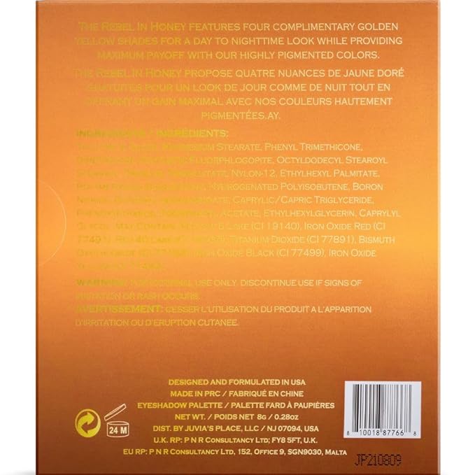 Juvia's Place Rebel Quad Honey Eyeshadow Palette - Professional Eye Makeup, Pigmented Eyeshadow Palette, Makeup Palette for Eye Color & Shine, Pressed Eyeshadow Cosmetics, Shades of 4