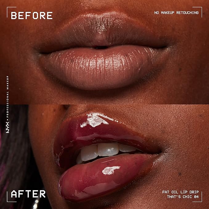NYX PROFESSIONAL MAKEUP Fat Oil Lip Drip, Moisturizing Lip Oil Gloss, Vegan Tinted Formula, Up to 12 HR Hydration - That's Chic (Deep Berry)