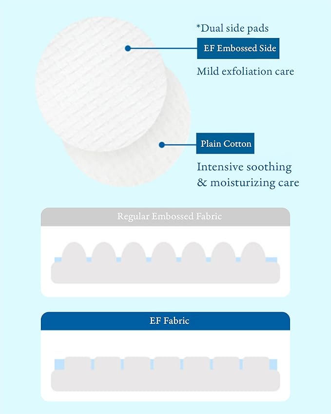 - QUICK & EASY MOISTURIZATION, SOOTHING & EXFOLIATION - These double-sided pads were designed with your Day and Night routines in mind. Start off your day with a bit of gentle exfoliation and use the embossed side of the pad to cleanse the skin from impurities and tone the skin, at night use the pads as a gentle soothing ampoule pad to calm and cleanse the skin; can also place and leave on your skin like a sheet mask