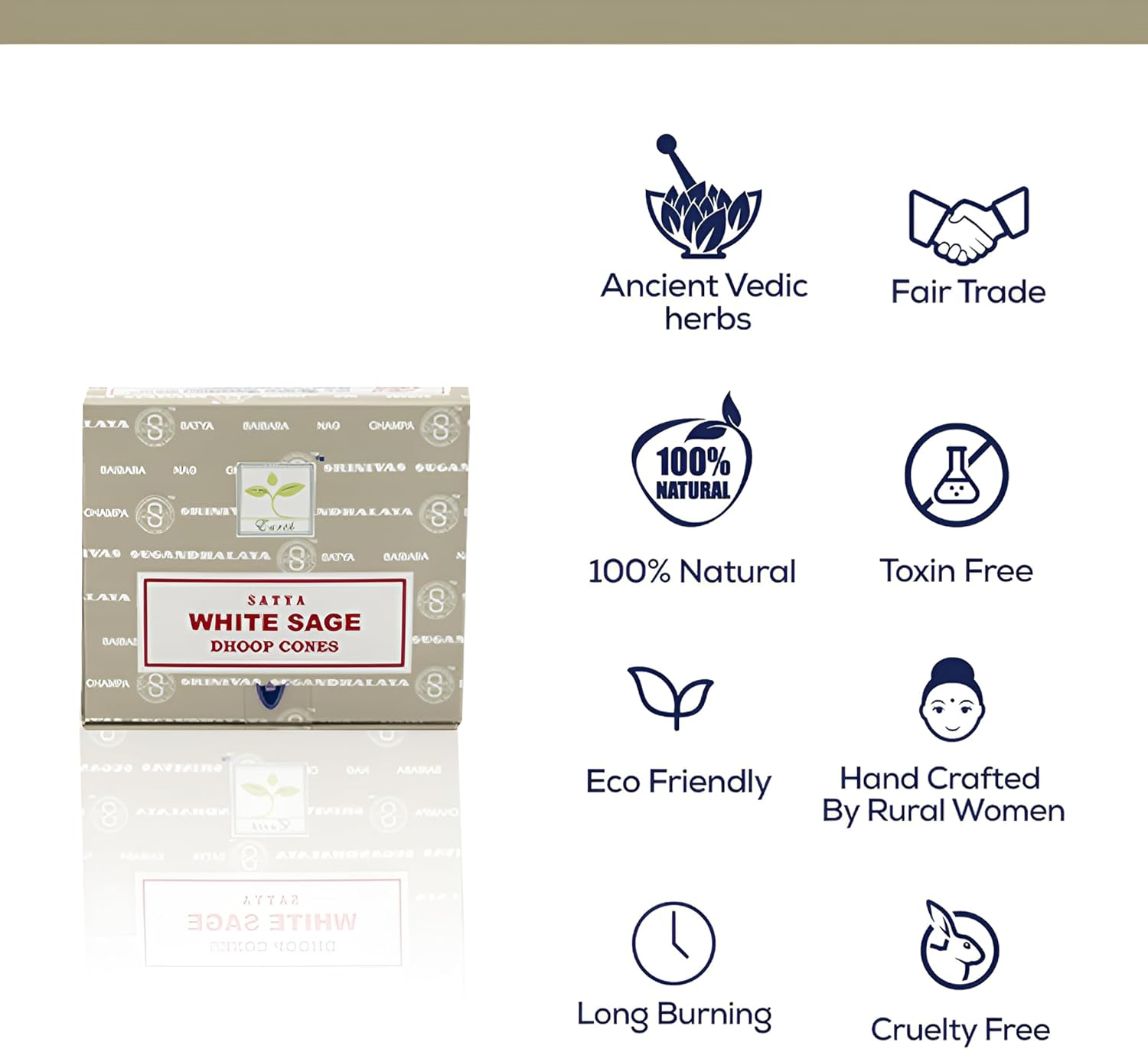 - ✅ 144 Dhoop Cones in 12 Boxes: Each pack contains 12 boxes, each filled with 12 earthy and soothing white sage-scented dhoop cones, providing you with a total of 144 cones for long-lasting use.