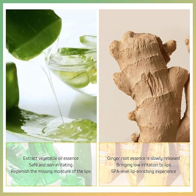- Moisturize & Lip Plumping -- The lip plumper set contains 1 aloe vera lip gloss and 1 ginger lip plumper. It has the dual effect of plumping and caring for the lips. Aloe vera lip gloss keeps your lips hydrated and bright, moisturizes and eliminates lip wrinkles. The lip plumper gloss provides a gentle lip-enriching effect, creating full sexy lips instantly.