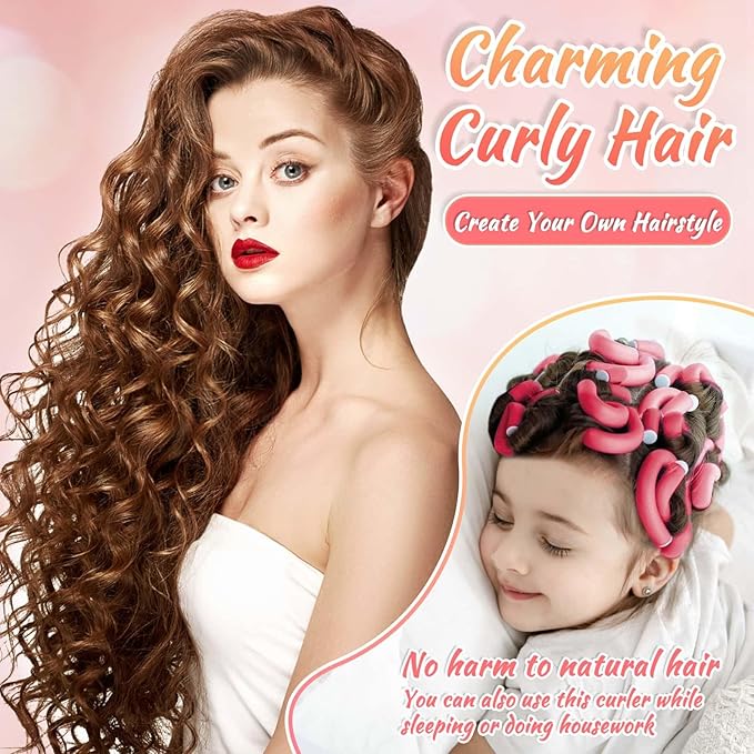 - No Damage to Your Hair: These No Heat flexible curling rods is safe to use without heat damage. You only need to roll the bendable hair curlers on the hair while sleeping, makeup or doing housework. After 60 minutes or more time, remove the hair rollers and you will have a charming curly hair