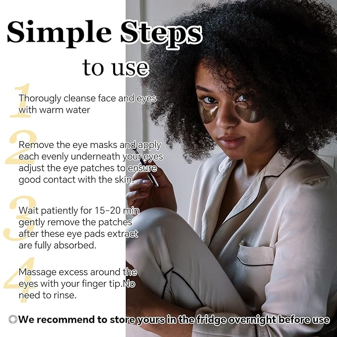 - 24K Gold Effect: gold eye mask is one of the most popular eye masks on the market, not just only like this eye mask's gold color, it’s most important this gold under eye patches have a huge improvement for problematic skin. Especially when it comes to anti-aging.