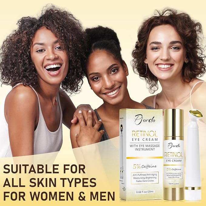 - Eye Skin Care: Retinol Eye Cream with eye massage instrument provides all-round care and nourishment for your eyes by minimizing dark circles, eliminating puffiness and bags, reducing fine lines and wrinkles, and other multiple effects. It not only gives you a youthful glow around your eyes, but also brings you confidence and charm.