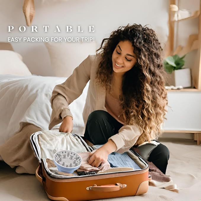 - 【Universal Fit & Travel-Friendly】: Lightweight and compact at just 176g, this universal hair diffuser fits over 99% of hair dryers, including hotel and small travel dryers. A must-have travel diffuser for on-the-go curly hair care, ensuring great curls no matter where you are.