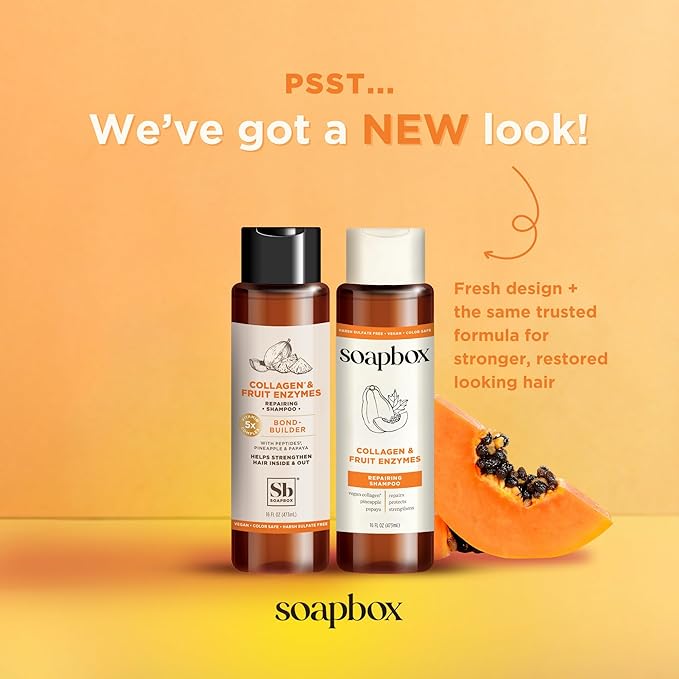Soapbox Collagen Shampoo & Conditioner, For Dry, Fine or Thin Hair, Strengthening with Collagen & Peptides for Fuller Looking Hair, 16oz Each (Pack of 2)