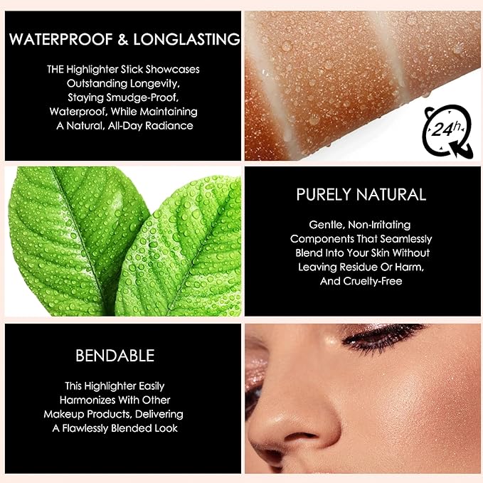 - ✨[Perfect Gift] This lightweight, silky highlighter stick elevates your natural beauty. It's both vegan and cruelty-free, making it an ideal birthday or holiday present for your loved ones, whether it's family, your spouse, or your friends.