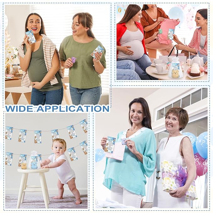 - Cute Personalized Keepsakes: each of the baby shower lip balm comes with corresponding greeting cards and a white organza bag; Exuding elegance, these cards are made from coated paper and fit seamlessly within the generously sized organza bags; This thoughtful inclusion boosts the personalized appeal of these favors, making them not only a joy to gift but also a delight to receive and keep