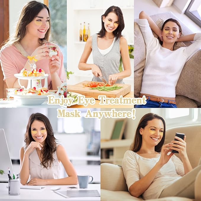 - JUST 20 MINUTES: Scientifically designed from ergonomics makes collagen eye mask better fit around the eyes. Whether you are sitting or standing, the eye mask will not slip off easily. With our golden eye mask, you don't have to worry about making time or setting aside a lofty budget. It only takes 15-20 minutes to enjoy an eye SPA at home!