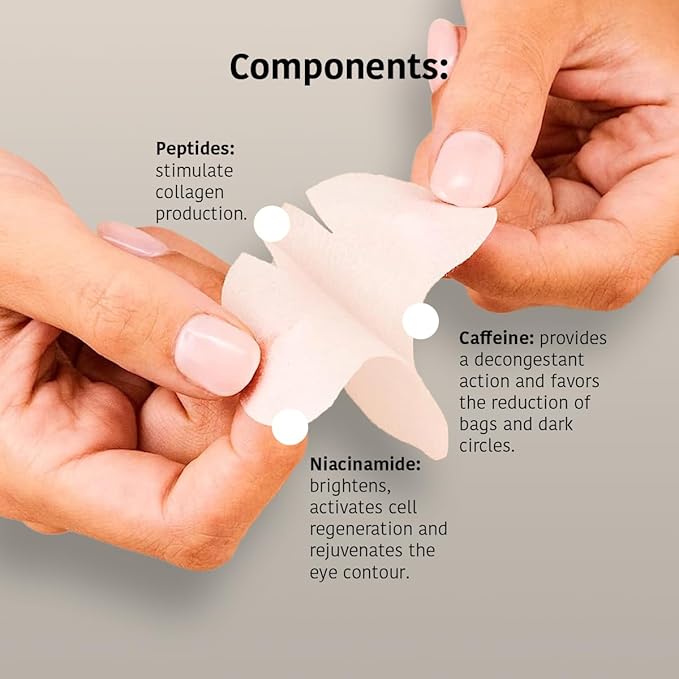 - KEY INGREDIENTS: they contain niacinamide, which illuminates, activates cell regeneration and rejuvenates the eye contour; caffeine, which provides a decongestant action and favors the reduction of puffiness and dark circles; and peptides, which stimulate collagen production reducing wrinkles