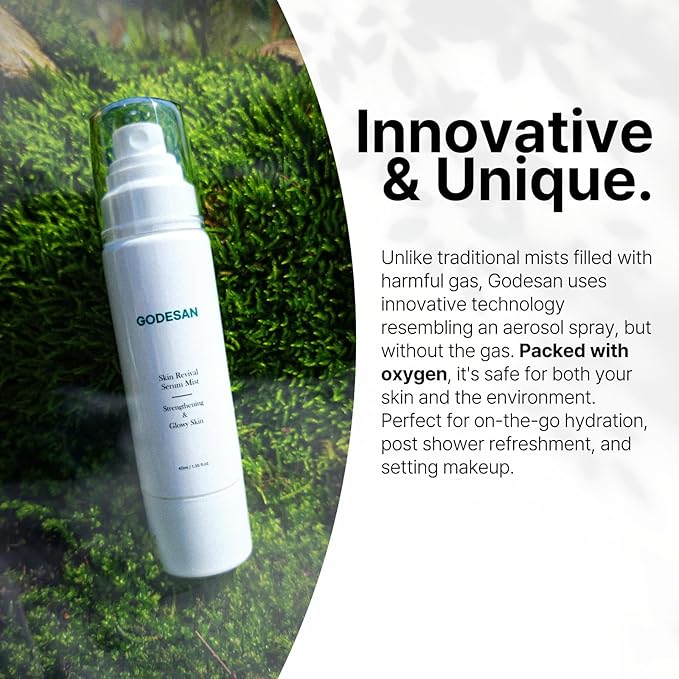 - 🌲Non-aerosol Mist🌲It functions like an aerosol spray, but it has been developed and designed with innovative technology to be non-aerosol. Traditional aerosols contain gas, which can be an irritant. Godesan Serum Mist is filled with pure oxygen, making it safe for use on skin and eco-friendly.