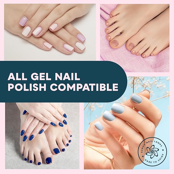 - One Lamp, All Gel Polishes: Our Gel Nail UV Light Lamp plays well with every gel polish type, including base coats, top coats, color gels, hard gels, builder gels, acrylics, and more. Achieve salon-quality perfection right at home