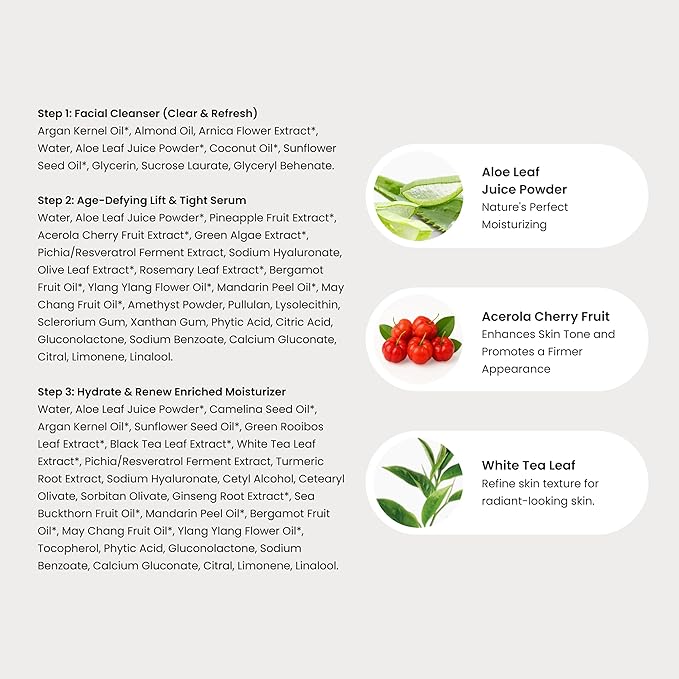 - ✔️ PROVIDES A VISIBLE TIGHTENING AND LIFTING-LIKE EFFECT: Experience the look of firmer, more lifted skin in both your face and neck. This skincare kit helps enhance the appearance of lift and tightness, giving the skin a more sculpted, youthful look