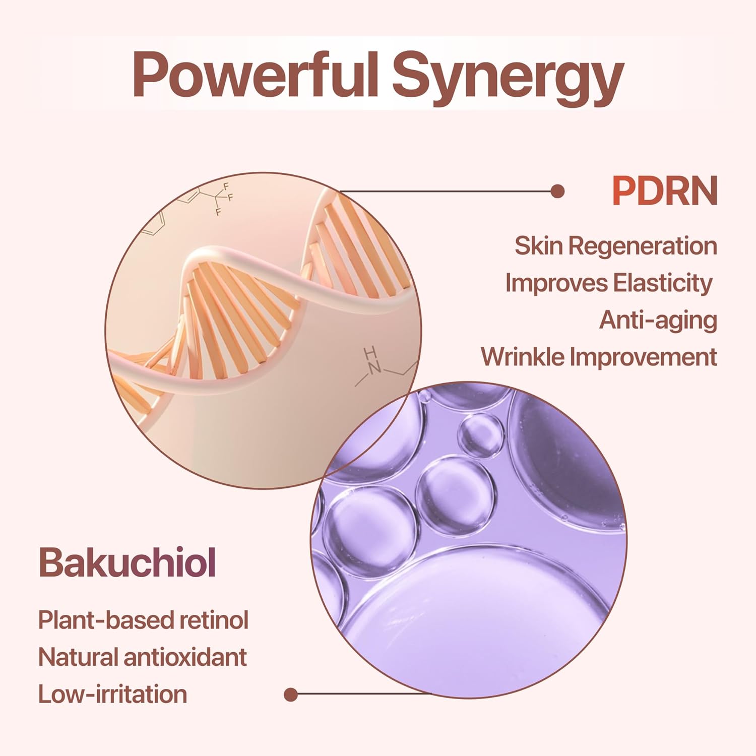 - Plant Based Bakuchiol: The antioxidant bakuchiol is a gentle, plant-based alternative to retinol to help fight visible signs of early aging. In combination with the PDRN, Bifida, and Collagen, your skin will feel moisturized and protected.