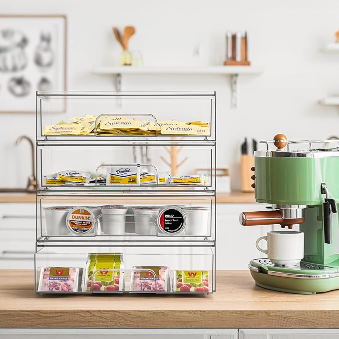 - Efficient Stackable Design: Save counter and drawer space with a vertical storage system that neatly organizes your essentials. Use as a cabinet organizer, pantry organizers and storage, makeup organizers, medicine cabinet organizer, under sink organizers and storage, home organization, clear containers for organzing, and more.