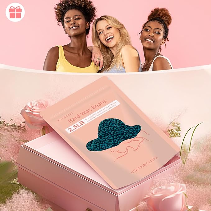 2.5lb Hard Wax Beads For Hair Removal, Yovanpur Waxing Beans for Sensitive Skin, Face, Eyebrows, Bikini, Brazilian, Legs and Full Body Bulk