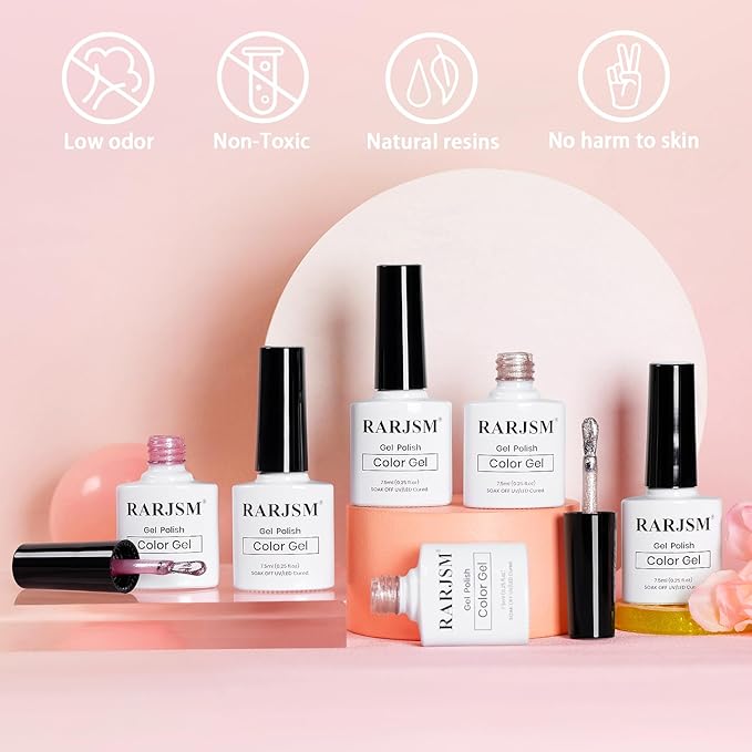 - 6PCS GLITTER NUDE SET:Package includes 6 bottles 7.5ml RARJSM nude tone with silver diamond cat eye glitter gel polish and 1 which suit for all skintone.Nude nails are slightly translucent,a nude manicure is one of our favorite ways to rock the neutral hue