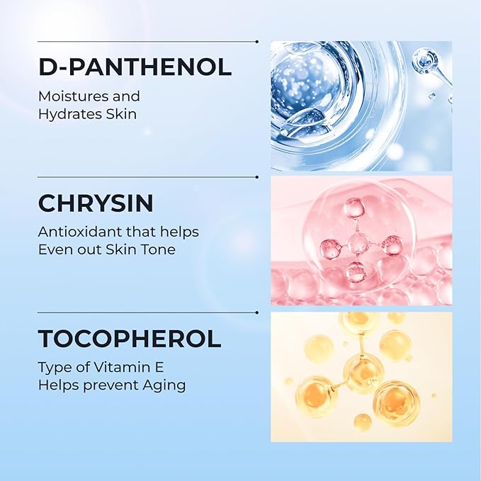 - MULTI-PROTECTION AGAINST UV & POLLUTION - Infused with Panthenol, Chrysin & Moringa Oil, it hydrates, soothes, and strengthens the skin barrier while protecting against oxidative stress and environmental damage. This dual-function sunscreen supports skin health and reduces sensitivity, making it perfect for daily use.