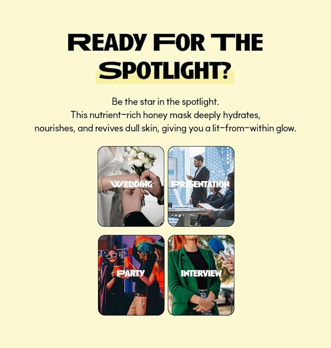 - π Instantly Boost Radiance & Hydration : Prepping for special event? This nutrient-rich honey mask deeply hydrates, nourishes, and revives dull skin, giving you a lit-from-within glow.