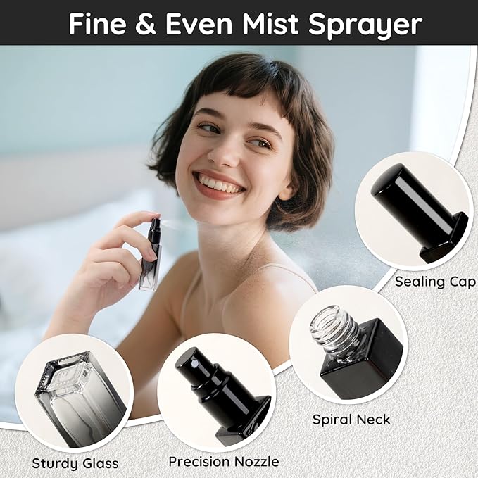 - Leak-proof and Durable: Made of high impact glass, these perfume bottles are built to last. The nozzle is designed to fit tightly, and the structure of the opening features a seal screw, which is solid, wear-resistant. No worry of breaking or leakage