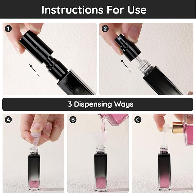 - Versatile Usage: Ideal for perfume, cologne, fragrances, face spray, toiletries product. An ideal cosmetic accessory for daily activity, especially for traveling, dating and outgoing