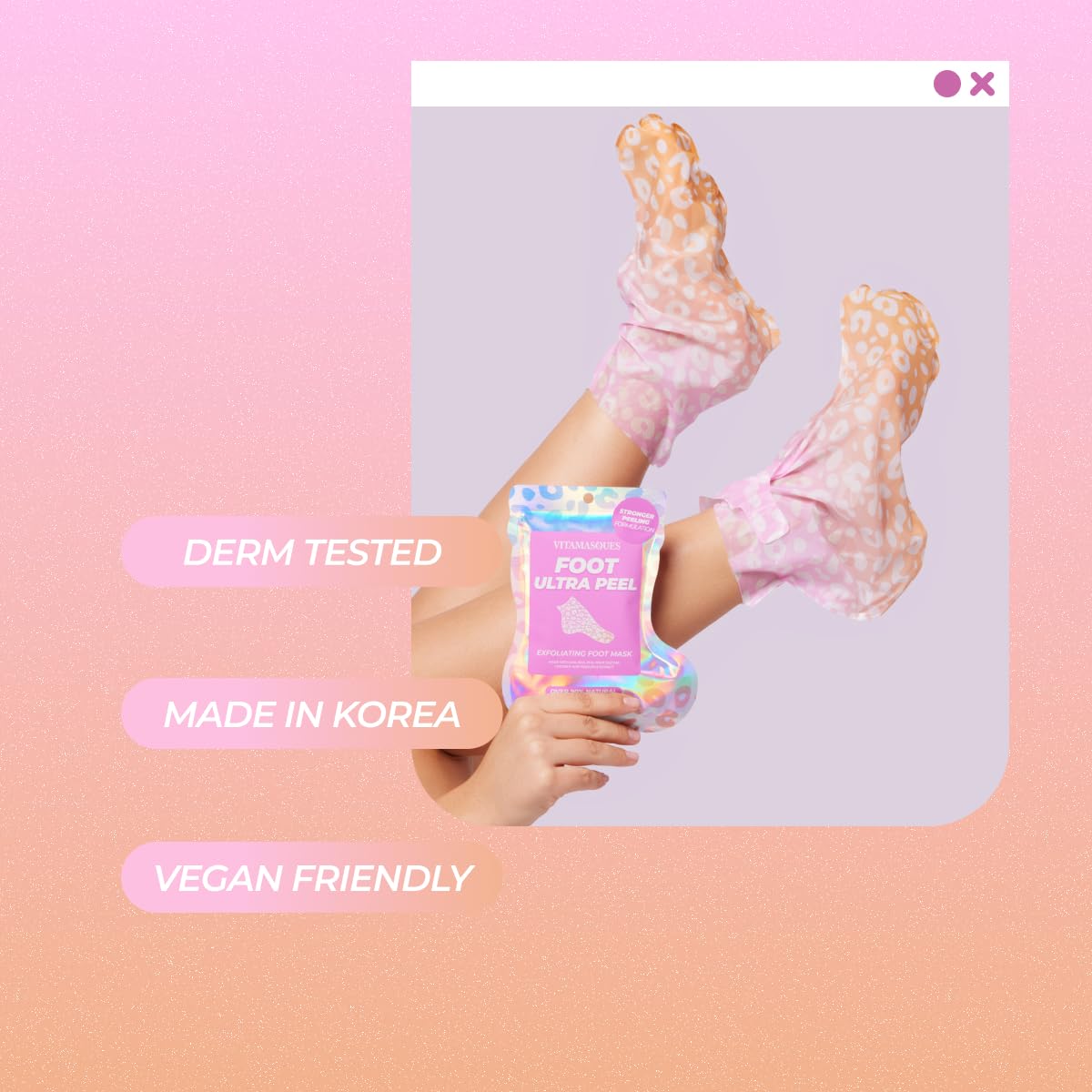 - Korean Beauty Inspired Skincare: Vitamasques brings Korean foot mask innovation to your self-care routine, blending clean skincare with powerful exfoliation. Our peeling foot mask is designed to deliver visible results, helping your feet look and feel their best naturally