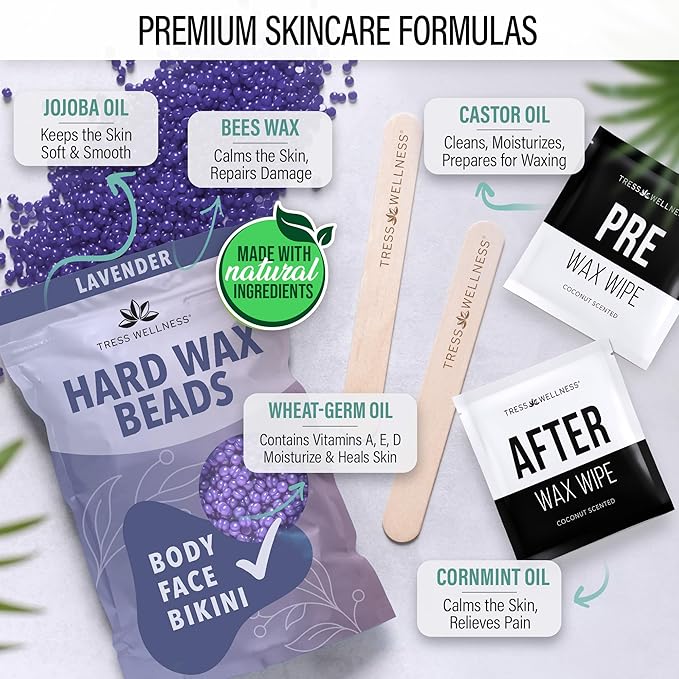 - DERMATOLOGICALLY TESTED AND CERTIFIED! All our waxing kits and hard wax beads are dermatologically tested & certified; making them safer for skin.