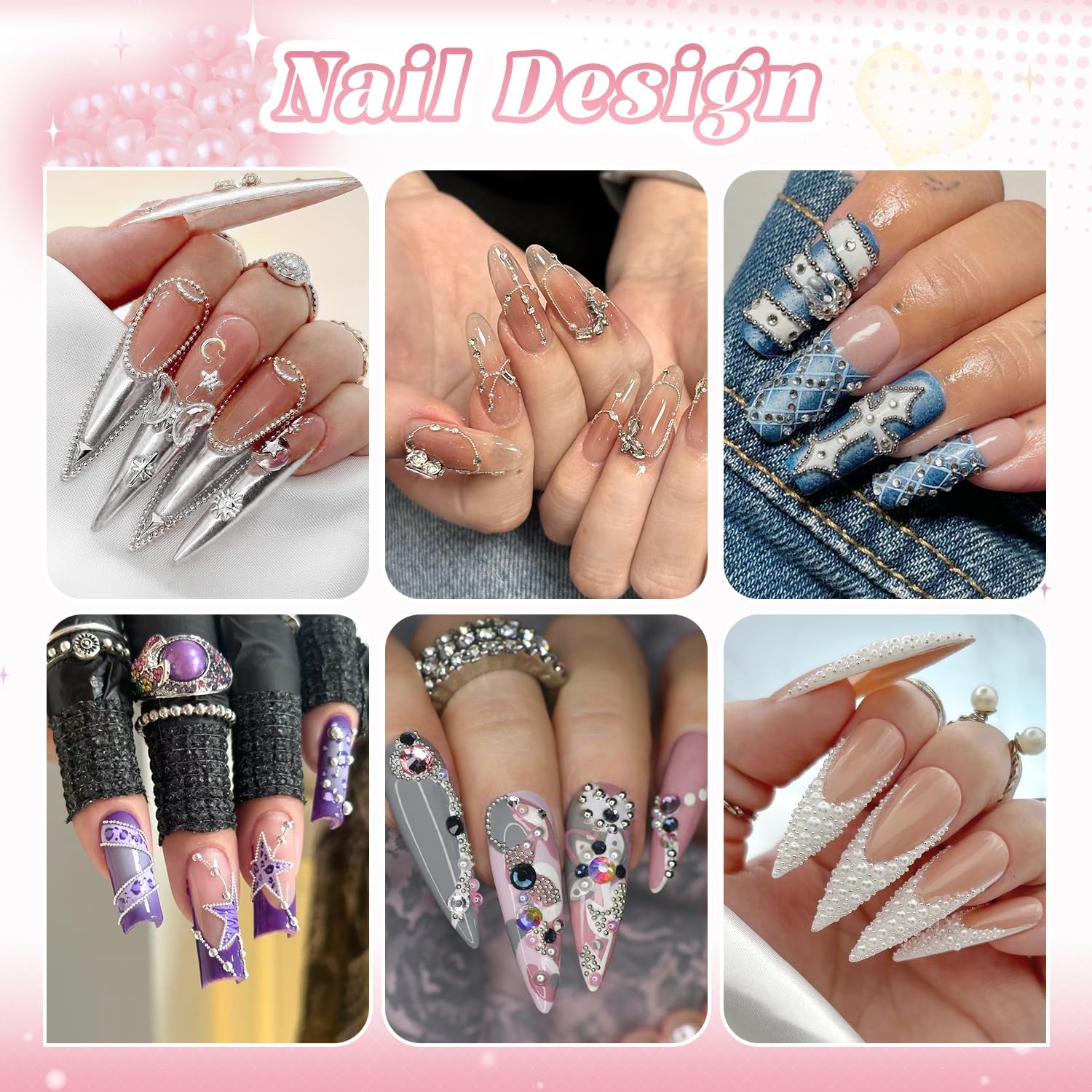 - Easy to Use -- These charms are easy to apply on natural or artificial nails by cleaning the nail surface, applying glue gel, then placing the charms with tools. Use a UV/LED lamp to cure for 60-90s. Do remember apply a top coat on them for long-lasting shine