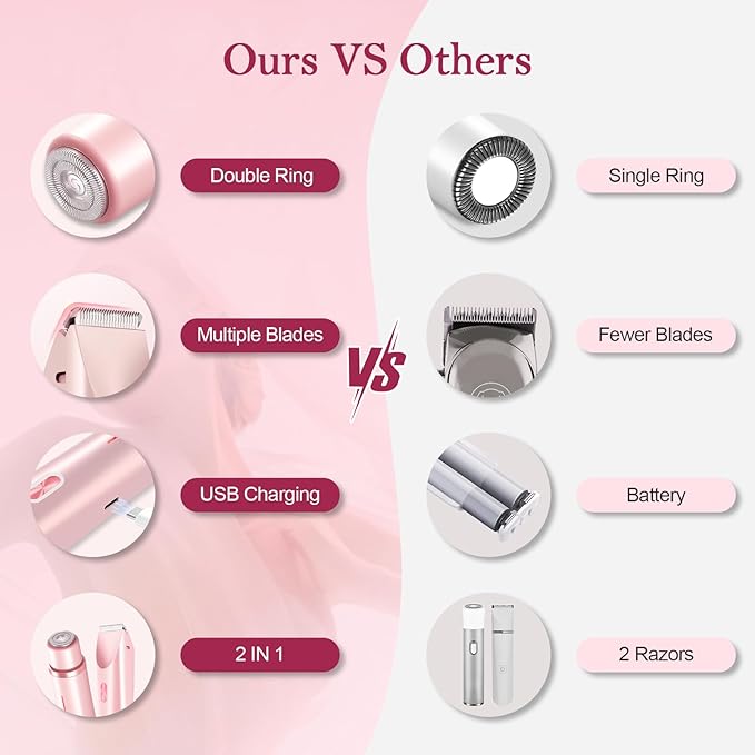 - 👙【2 in 1 Dual Head Bikini Trimmer】Our trimmer for women features a dual head design, with a shaving head at the top with fixed length comb teeth to help you control the length of your trim, and a fine shaving head at the bottom. You'll be able to maneuver delicate areas like underarms and legs with ease and get a smooth, precise shave every time