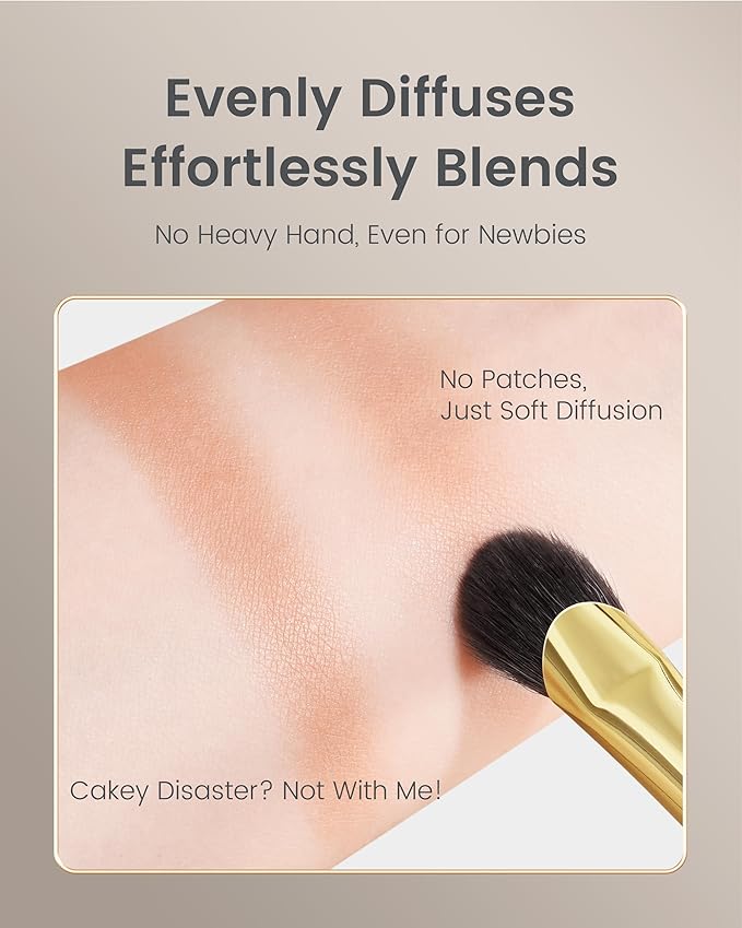 - โจ Zero Cross-Contamination & MUA Efficiency (Both Brushes): Ultra-dense natural Goat Hair holds pigment without absorbing excess, allowing you to switch between dark and light shades without mixing. Cut crease time by 50% with the curved surface creating gradient effects in just 2 swipes, ideal for gentle blending on mature eyelids