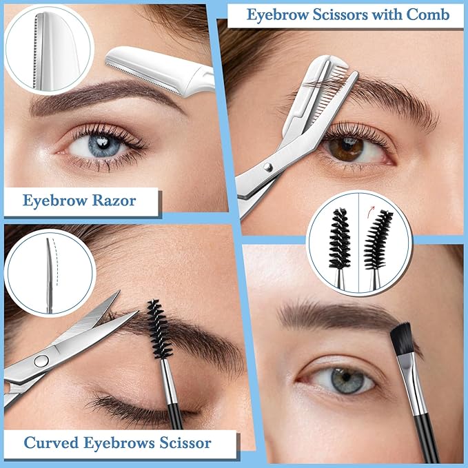 - Eyebrow Razor & Brush: Eyebrow razor has Removable blade and the blade can be removed from the handle, stainless-steel blade is sharpness with protective net does not hurt the skin, 180° foldable Rotation design, easy to carry and prevent scratches. Eyebrow brush has one head eyelash brush and eyebrow groomer on another side. Double side eyebrow comb will help you evenly to separate eyebrow, keep your eyebrow tidy and clean. And can easily separate lashes after curling and mascara application