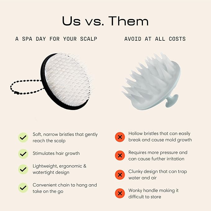 - Our exfoliating scalp brush, a Health "Beauty Award Winner", helps remove build-up from flaking & styling products. Gently brush the scalp in circular motions before washing, or in the shower as a shampoo brush while you lather. Added bonus: a cleaner scalp means thicker and healthier looking hair.